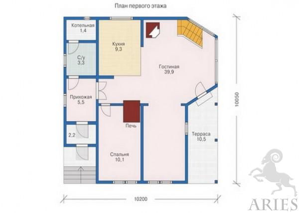 Площадь 1-го этажа: 82,2 кв.м
